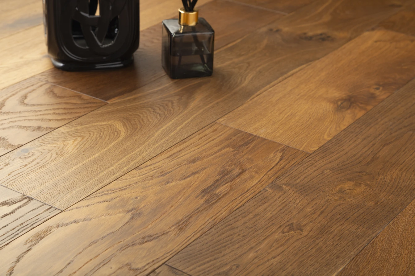 The Sunshine Collection -- Grandeur’s most vibrant collection of European oak engineered flooring. This collection features a stunning smoked & wire brushed texture and boasts an impressive 4mm veneer. Each plank in this collection undergoes a meticulous process, starting with several rounds of smoking to attain its striking and vibrant colors. Once the desired color is achieved, the smoking process is completed. Wire brushing is then lightly applied to enhance the innate beauty of the wood’s natural grain.